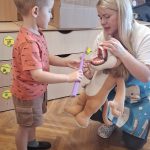 Palīdzēja lauvēnam pareizi iztīrīt zobus, apskatījās maketiņā kā izskatās bojāts zobiņš (kariess).
