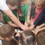 Mūsu bērnudārzā uzmanība tiek pievērsta atbildīgai resursu izmantošanai. Viens no lieliskiem piemēriem ir tas, kā bērni mācās izmantot pārtikas produktu pārpalikumus – pat tik šķietami nenozīmīgas lietas kā kartupeļu mizas, kuras parasti nonāk atkritumu spainī, bet šoreiz tās rotā mūsu kompozīciju.